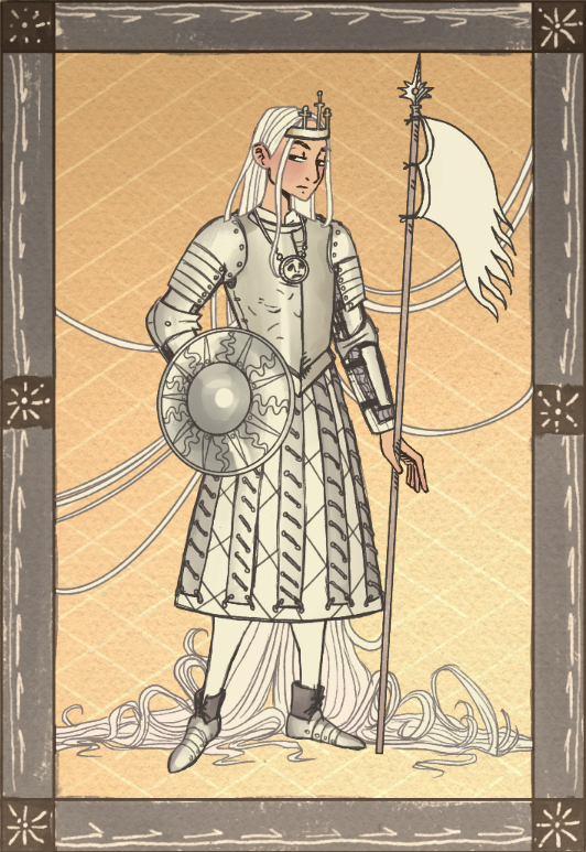 I adore your knights!! So glad to see those ink blots on a beautiful knight, and the all-white look is chilling. Using the WRINKLES AS SCRATCHES? Brilliant. Oh gosh, you all are so clever.